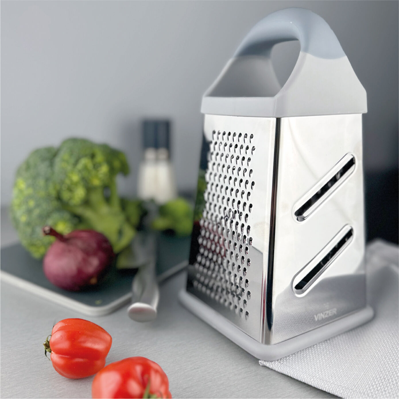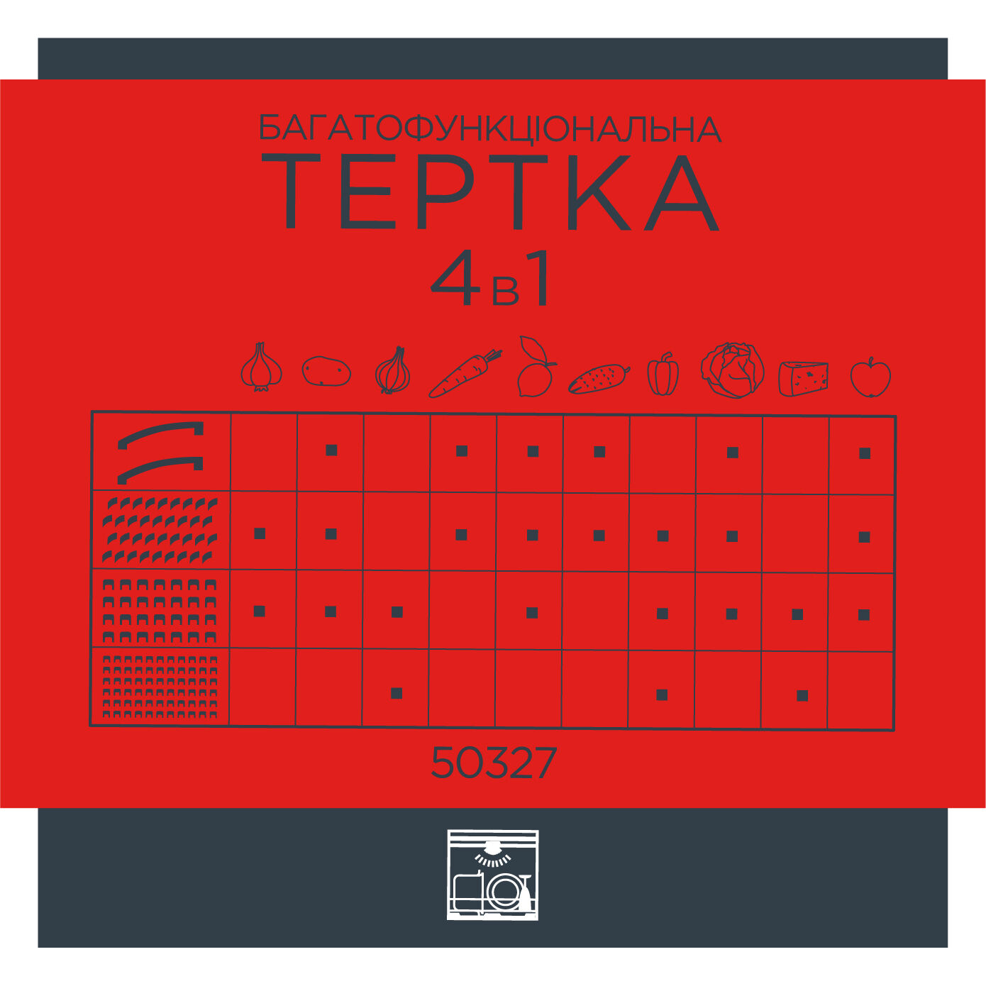 Багатофункціональна тертка має чотири робочі сторони з різними видами шатківниці. Тертка виготовлена з нержавіючої сталі FERRINOX 18/10.