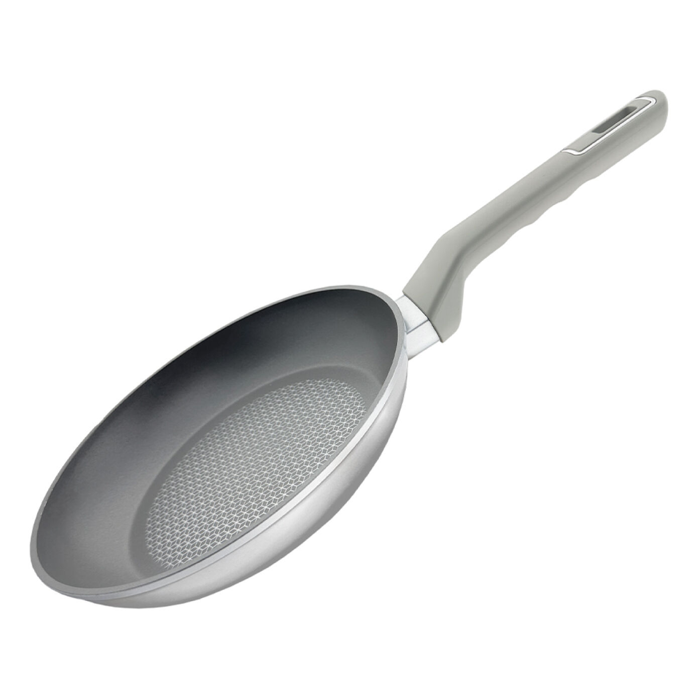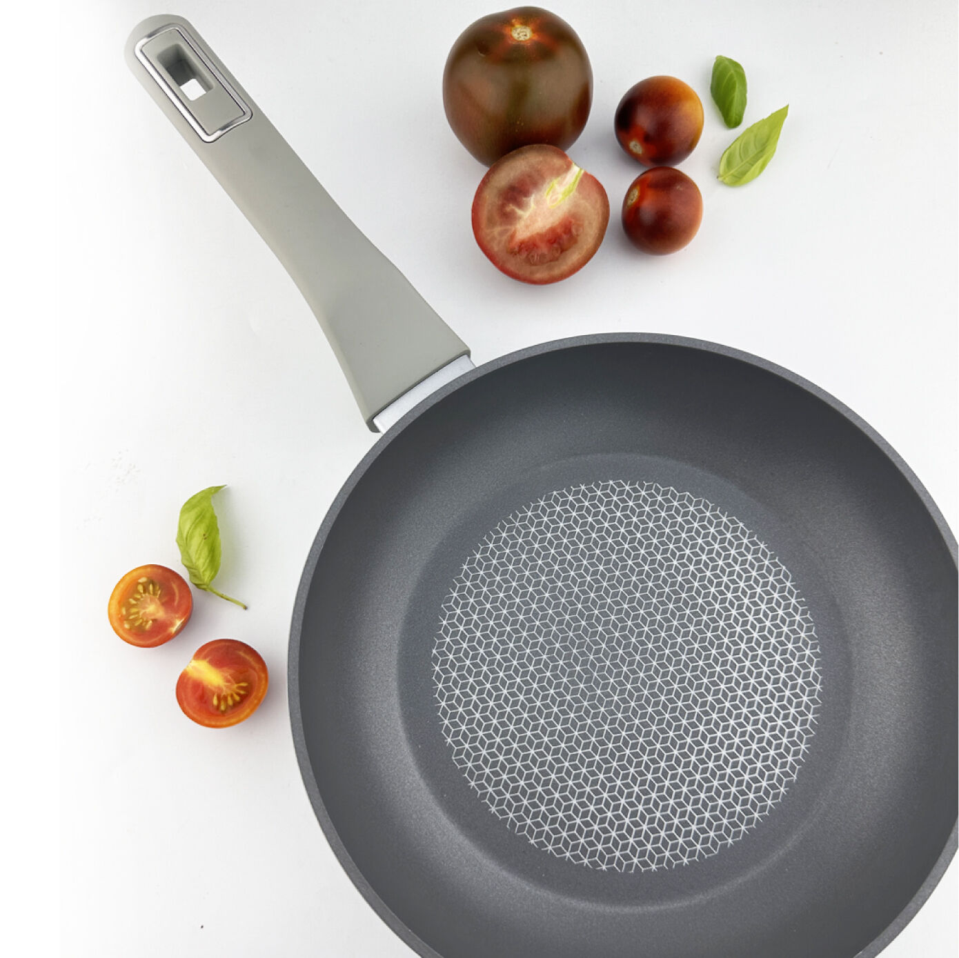 Сковорода виготовлена із міцного алюмінію з антипригарним покриттям Quantanium. Алюміній має високу теплопровідність, стійкий до деформації, зносу та корозії. У сковороді є індукційний диск, який дозволяє використовувати її на всіх видах плит. Зовнішнє покриття – жароміцне, тому не псується від впливу високих температур. Ручка не ковзає в руці завдяки покриттю soft touch і не нагрівається.