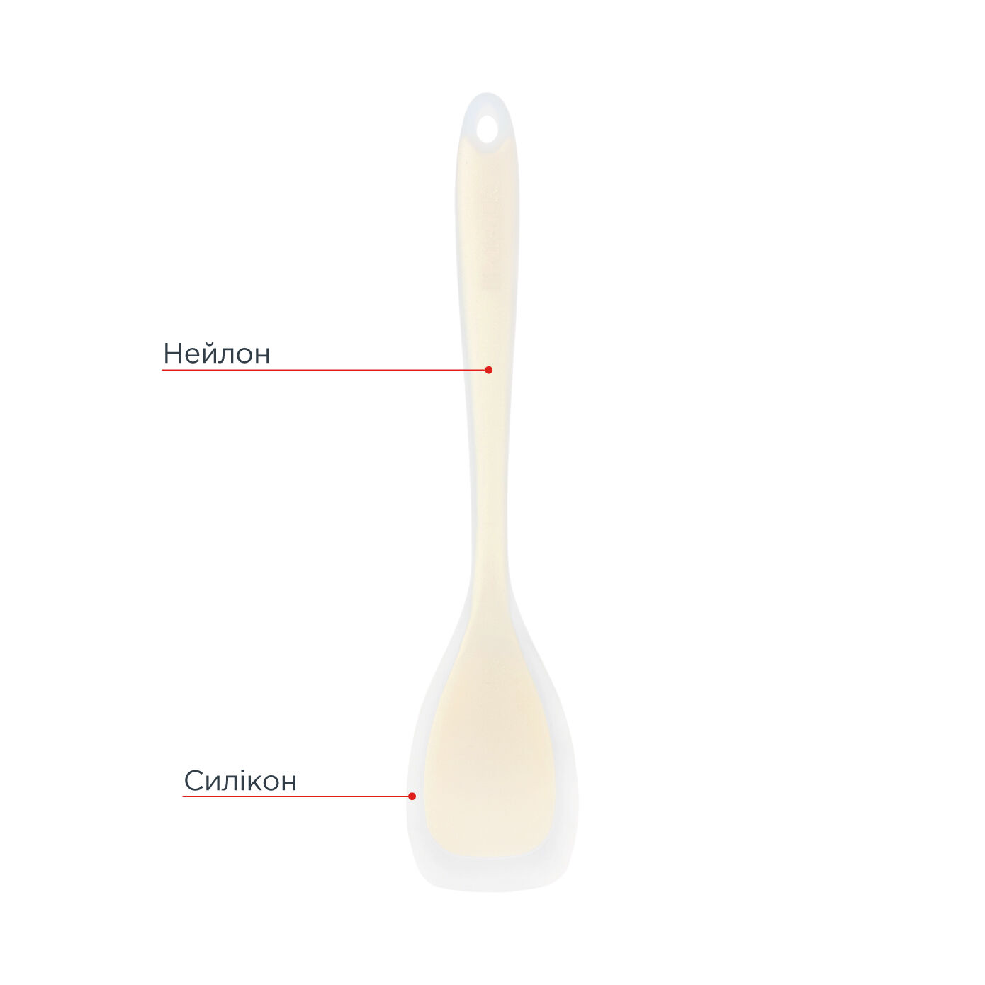 Лопатка стане незамінною під час приготування різних страв. Виготовлена із якісного силікону, не вбирає запахи та не виділяє шкідливих речовин при нагріванні. Підходить для посуду з антипригарним покриттям. Легко миється вручну та в посудомийній машині.