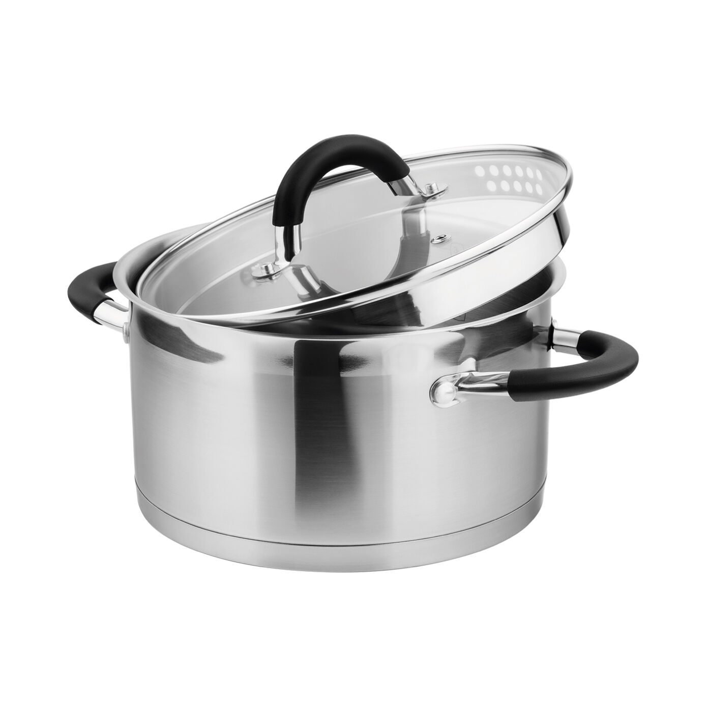 Містка каструля Vinzer Progresso діаметром 20 см і обємом 3.4 л зі зручним носиком для бокового переливу виготовлена з високоякісної нержавіючої сталі FERRINOX® 18/10. У ній можна готувати супи, борщ, зварити бульйон, тушкувати овочі і мясо, спробувати приготувати за новими рецептами страв від відомих шеф-кухарів. В ній можна робити практично все, щоб ваша сімя відчувала вашу турботу про них. Адже весь посуд Vinzer розроблений для приготування різних страв з максимальним збереженням вітамінів і корисних речовин.Каструля має унікальне тришарове дно, виготовлене за технологією "Impact Bonding": два шари нержавіючої сталі і шар алюмінієвого сплаву між ними, що сприяє акумуляції та рівномірному розподілу тепла. Ергономічні ненагревающіеся ручки з нержавіючої сталі з силіконовими вставками прикріплені до корпусу надійним нютовим кріпленням.Стильне поєднання дзеркального та матового полірування гармонійно впишеться в будь-який кухонний інтерєр.Каструля Vinzer Progresso підходить для використання на всіх видах плит, включаючи індукційні варильні поверхні.